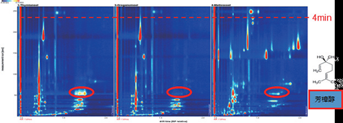 準確便捷的定性軟件 GC×IMS Library Search軟件能夠簡單快速對復雜基質中的未知揮發(fā)性有機化合物(VOCs)進行定性。軟件內置NIST 2014保留指數(shù)數(shù)據(jù)庫和G.A.S.漂移時間數(shù)據(jù)庫,二者結合,使得化合物的定性更加準確。